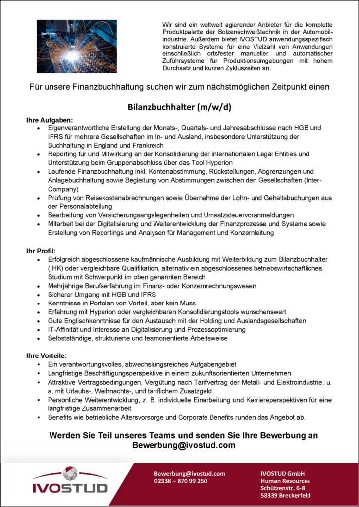 Senden Sie Ihre Unterlagen an bewerbung@ivostud.com